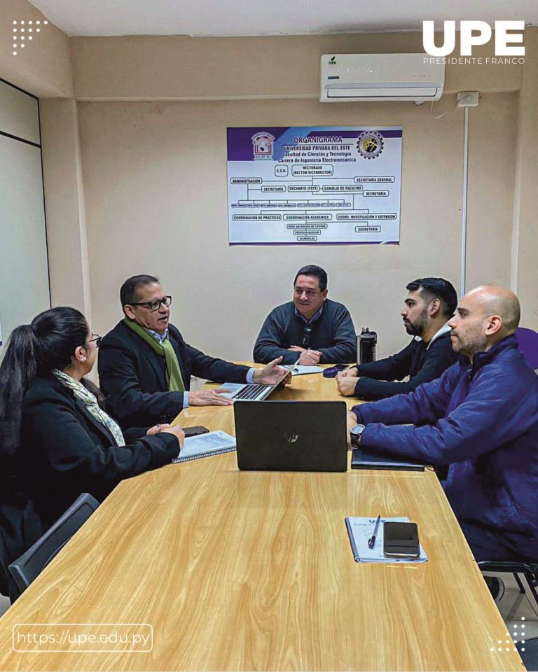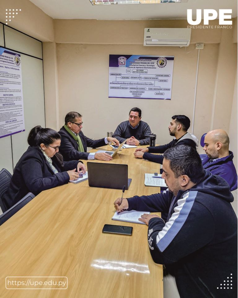 Se realizó una reunión en el Decanato de la Facultad de Ciencias y Tecnologías de la UPE, sede Presidente Franco, con el objetivo de organizar y planificar el evento de "Robótica, Ingeniería e Inteligencia Artificial".